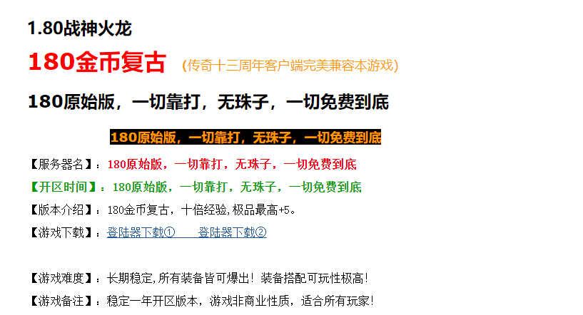 1周毕业.怀旧复古.送顶赞,回馈,狂暴,沙捐,首充等.新版强烈推荐